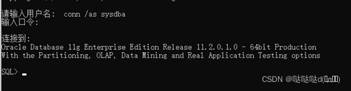 然后執行conn /as sysdba,不用輸入口令直接登錄