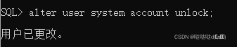 連接Oracle服務器成功后,執行alter user system account unlock; 來對system用戶進行解鎖。