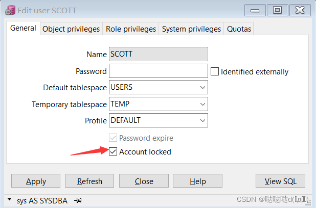 System賬戶已經知道密碼了,我們可以通過sys賬戶登錄,解鎖普通用戶。