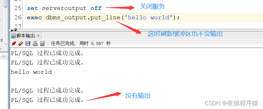 set serveroutput off --將output 服務關閉