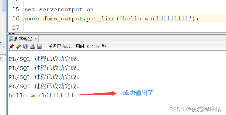 exec dbms_output.put_line("hello world1111111");