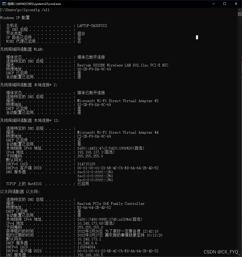 網卡的mac地址是: