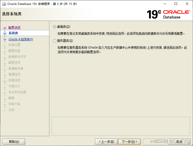 - 3、根據需要選擇需要安裝的類型,我是安裝桌面的,可以減少Oracle數據庫運行的系統資源的開銷