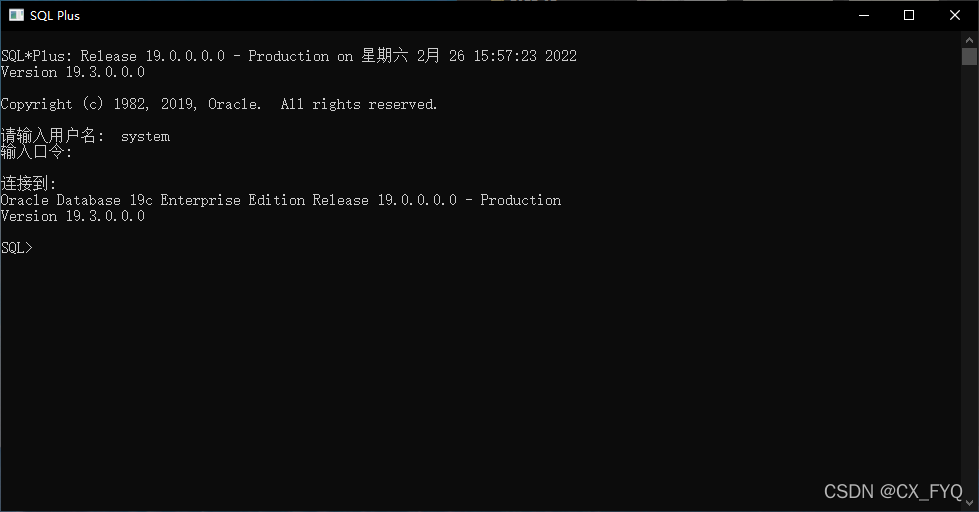 顯示以上界面證明SQL Plus連接成功!