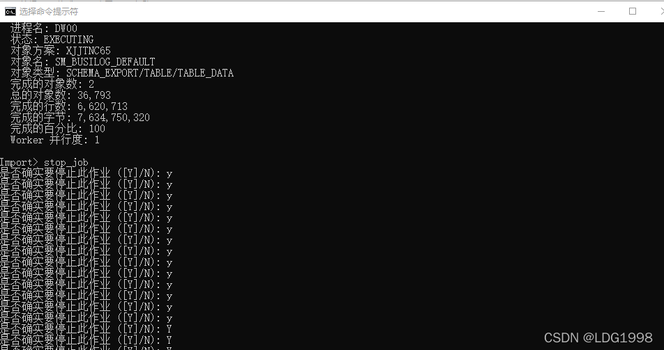 接著,當我使用 stop_job 這條命令后會提示是否停止作業,這時只需要輸入一次Y然后回車兩次就好了,不需要一直輸入Y。0.0
