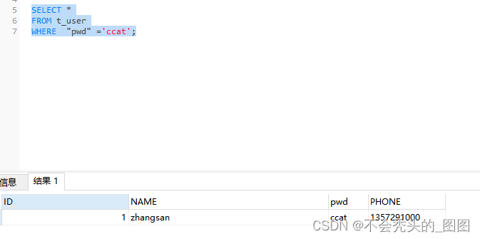@Test void test01(){User user = userDao.findByPwd("ccat");System.out.println("user = " + user); }再來看看我的dao層代碼塊和實體代碼塊