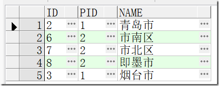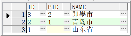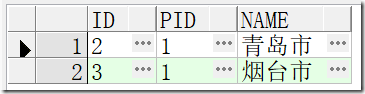 2、查詢青島市的下一級子節點(注意和上面區分,全部子節點和下一級子節點)