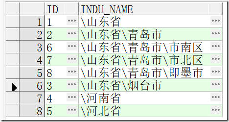 SELECT t.ID, SYS_CONNECT_BY_PATH(t.NAME, "\") AS INDU_NAME FROM TREETEST t START WITH t.PID IS NULLCONNECT BY PRIOR t.ID = t.PID