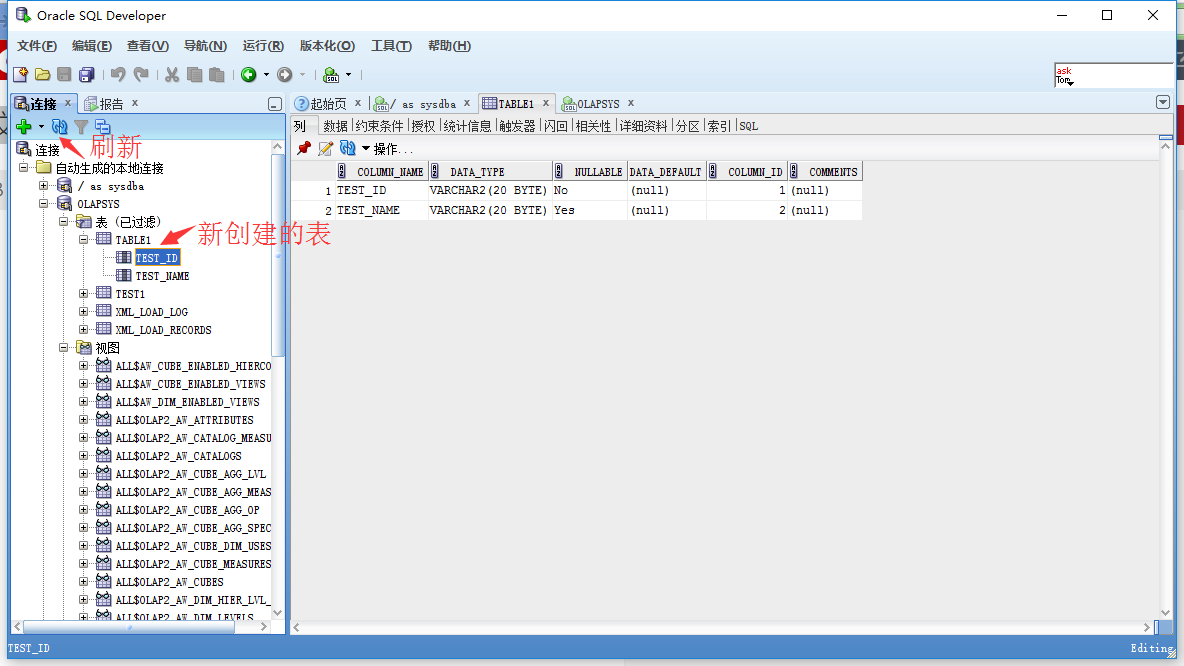 - 6. 查看表,點(diǎn)擊刷新 后可以查看到創(chuàng)建的表