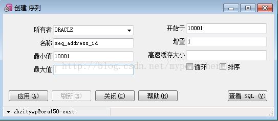 選擇序列所有者,并填寫序列的起始值、名稱和增量等信息,并應(yīng)用