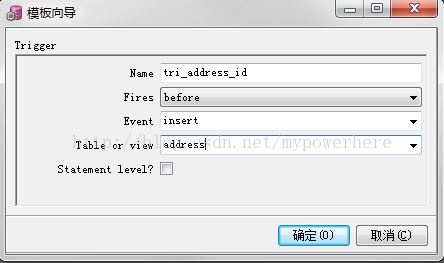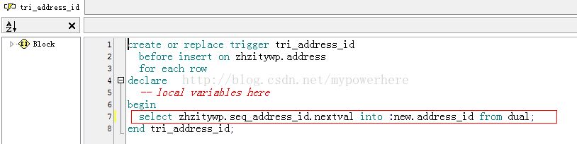 該觸發(fā)器在數(shù)據(jù)庫注冊了表的偵聽,即當(dāng)指定表address插入記錄之前,我們調(diào)用序列的nextval獲得新值,插入需要自增的字段。