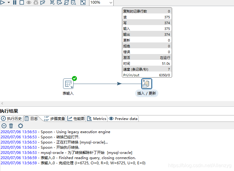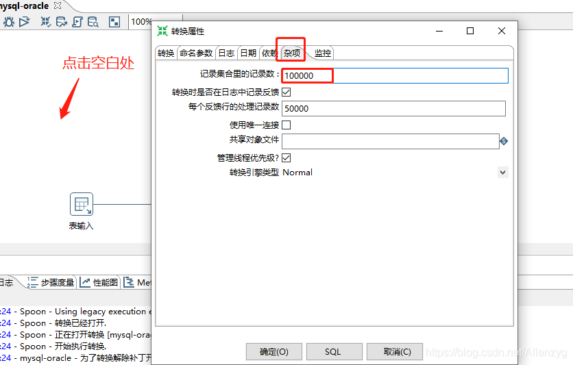 打開kettle,轉換頁面,雙擊空白處,會出現上圖所示的彈框,在雜項中會看到記錄集合中的記錄數,需要修改這一欄的數值,也就是解除同步條數的限制,可以大概評估一下自己的數據量,來合理的設置該值,設置完成之后,重新運行,成功。