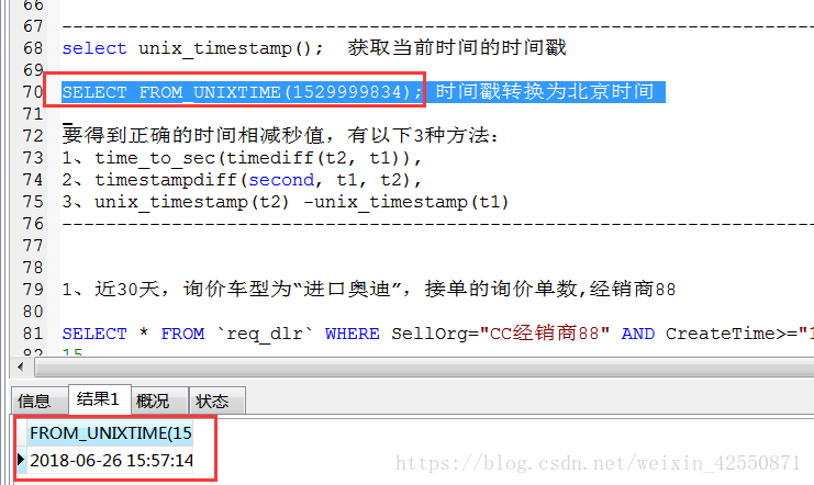 SELECT FROM_UNIXTIME(1529999834);時間戳轉換為北京時間