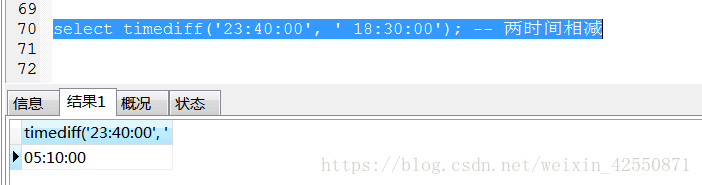 3、timediff(time1,time2),兩個時間相減,返回time差值,如圖