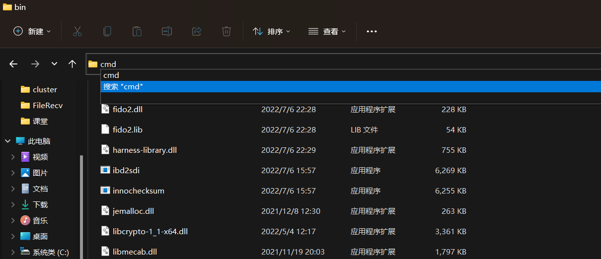 2、或者直接去到bin目錄里在目錄框里輸入cmd