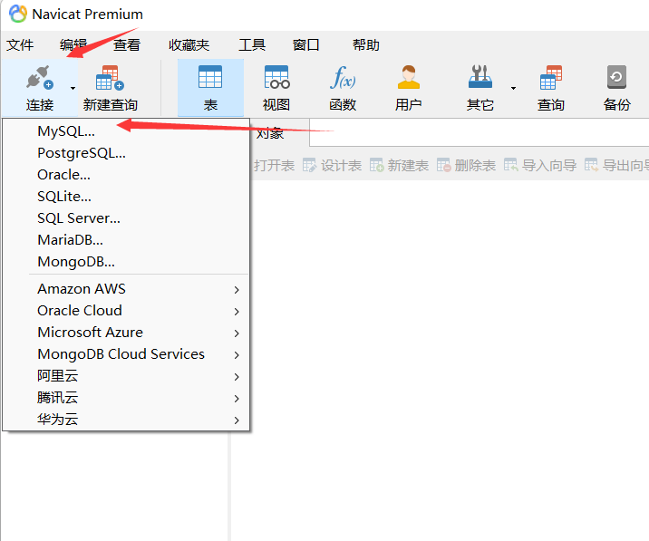 首先打開 Navicat Premium 點(diǎn)擊連接Mysql,