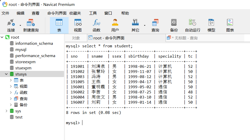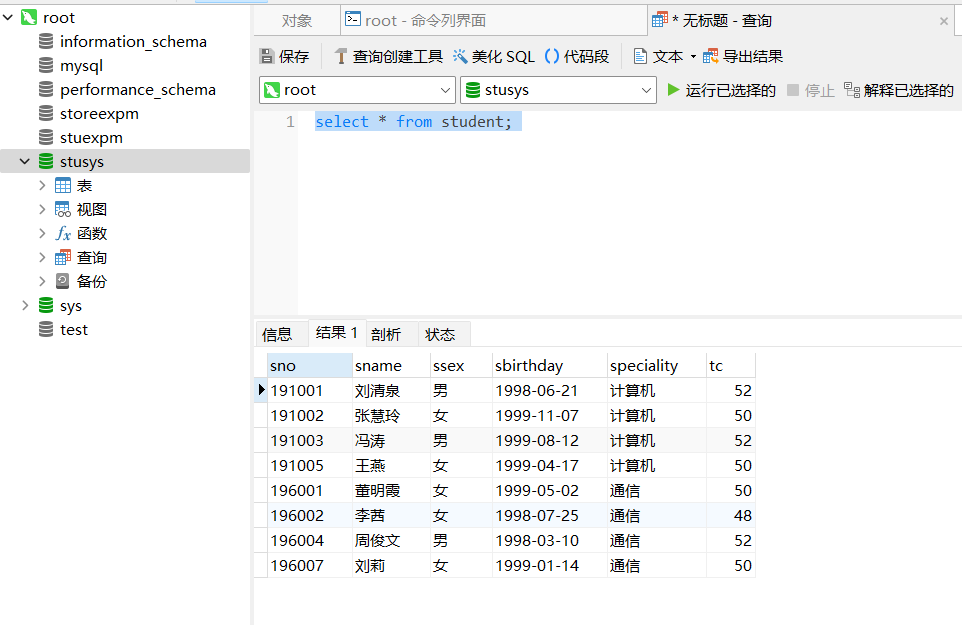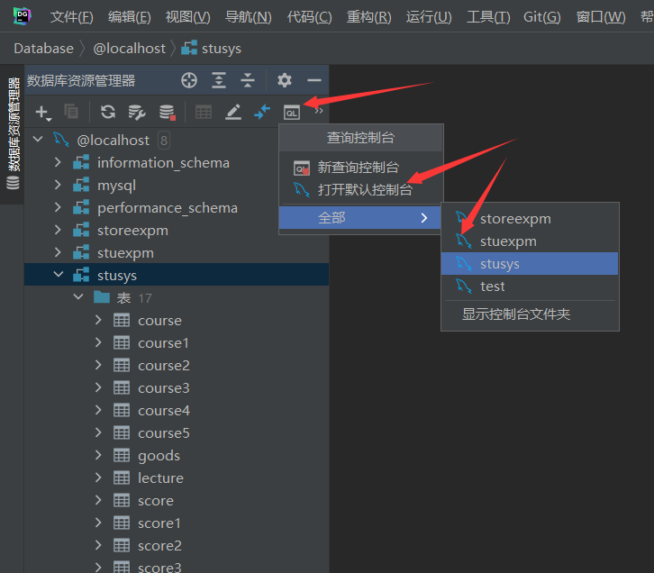 選擇一個(gè)數(shù)據(jù)庫(kù)右鍵->點(diǎn)擊命令行界面、或新建查詢就可以進(jìn)行操作了。