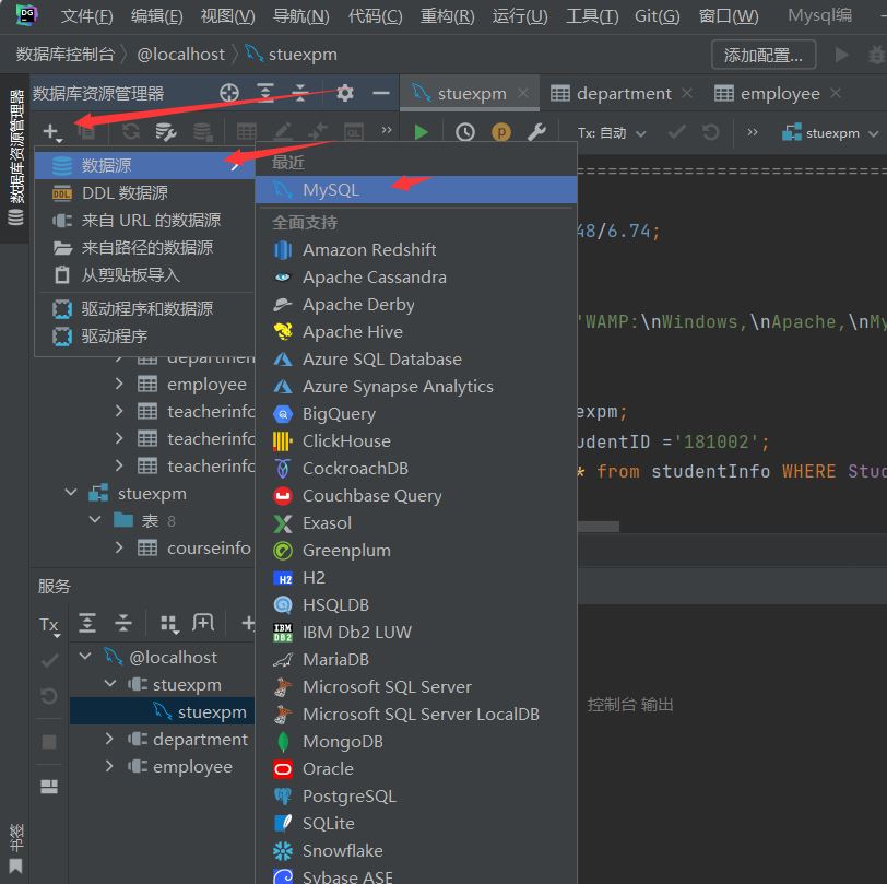 接下來(lái),我們來(lái)使用DataGrip完成數(shù)據(jù)庫(kù)的常用操作,包括查詢數(shù)據(jù)、修改數(shù)據(jù),創(chuàng)建數(shù)據(jù)庫(kù)、表等。