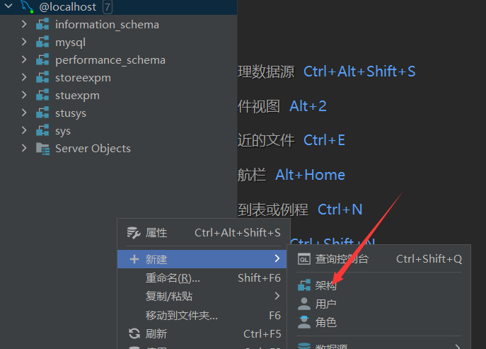 在datagrip中,使用Ctrl+N快捷鍵,彈出一個(gè)搜索框,輸入需要導(dǎo)航的名稱,回車即可
