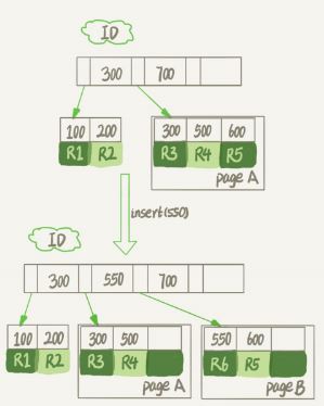 假設(shè)圖1中page A已經(jīng)滿了,這時(shí)我要再插入一行數(shù)據(jù),會(huì)怎樣呢?