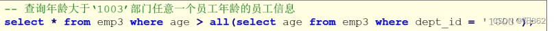 - ALL:與子查詢返回的所有值比較為true則返回true