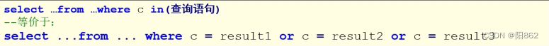 - IN關鍵字,用于判斷某個記錄的值,是否在指定的集合中
