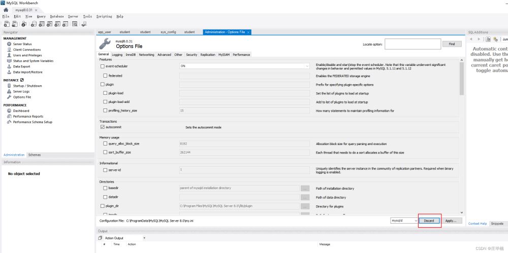 到此這篇關(guān)于MySQL 8.0.31中使用MySQL Workbench提示配置文件錯(cuò)誤信息的文章就介紹到這了,更多相關(guān)MySQL Workbench提示配置文件錯(cuò)誤信息內(nèi)容請(qǐng)搜索以前的文章或繼續(xù)瀏覽下面的相關(guān)文章希望大家以后多多支持!