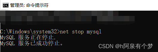 進入目錄后,確保自己已經關閉了Mysql的服務:net stop mysql