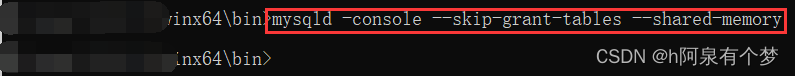 關閉Mysql服務之后,繼續在X:\XXXXX-winx64\bin(mysql的bin目錄)目錄下進行操作: