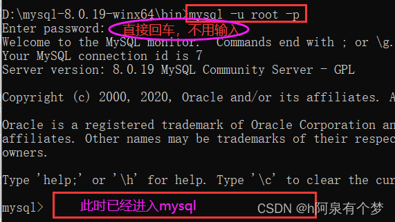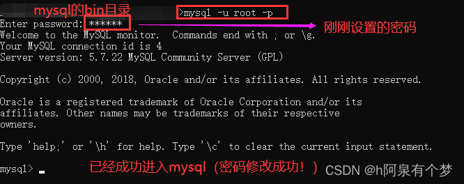 執行語句mysql -uroot -p,輸入剛剛設置的密碼即可登錄成功