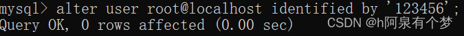 執行alter user root@localhost identified by '123456';語句,把密碼修改為123456(這里填自己想要的密碼)