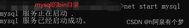 ③再次執行net start mysql命令啟動服務,發現啟動成功!