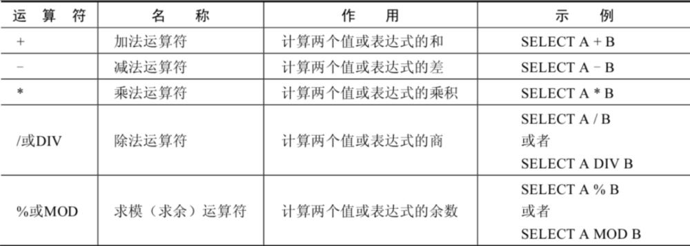 - 在數(shù)學(xué)運(yùn)算中,0不能用作除數(shù),在MySQL中,一個(gè)數(shù)除以0為NULL。