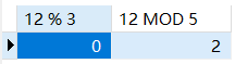 SELECT 12 % 3, 12 MOD 5 FROM dual;