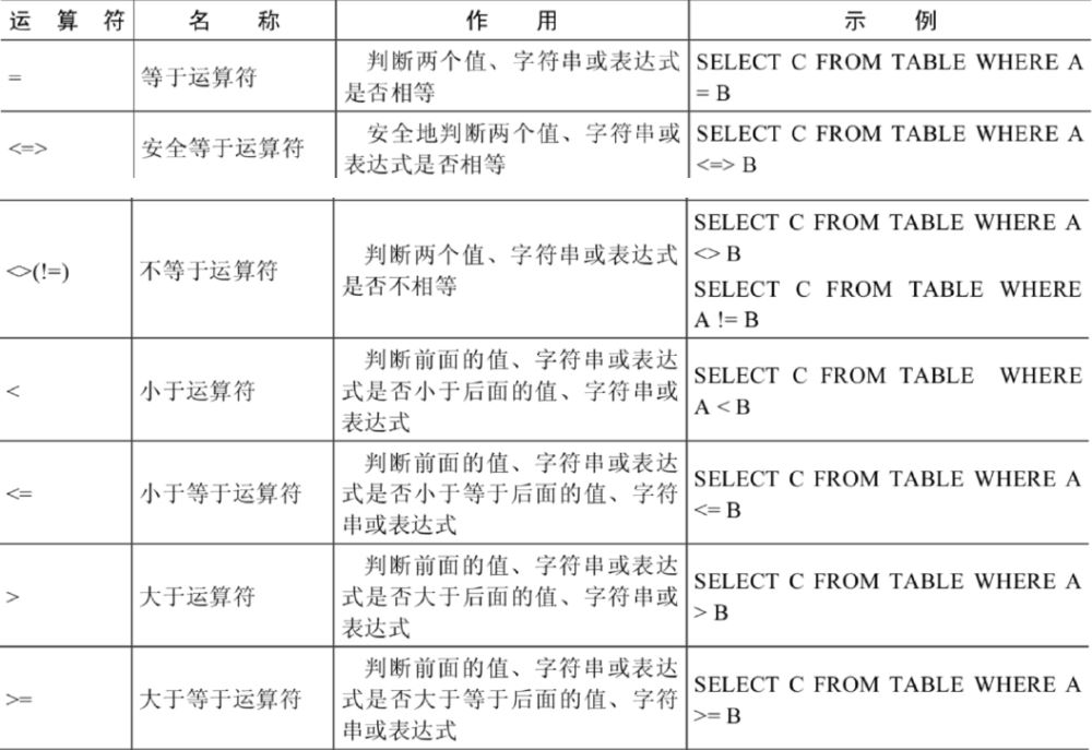 比較運(yùn)算符用來對表達(dá)式左邊的操作數(shù)和右邊的操作數(shù)進(jìn)行比較,比較的結(jié)果為真則返回1,比較的結(jié)果為假則返回0,其他情況則返回NULL。