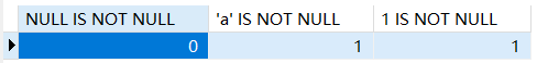 SELECT NULL IS NOT NULL, "a" IS NOT NULL, 1 IS NOT NULL;