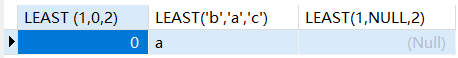 - 給定的值中任意一個(gè)值為NULL時(shí),則返回NULL;