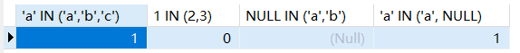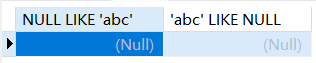 - 如果等號兩邊的值、字符串或表達(dá)式中有一個(gè)為NULL,則比較結(jié)果為NULL。