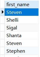 7.顯示出表 employees 表中 first_name 以 'e’結(jié)尾的員工信息