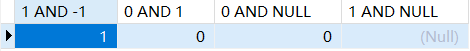 SELECT 1 XOR -1, 1 XOR 0, 0 XOR 0, 1 XOR NULL, 1 XOR 1 XOR 1, 0 XOR 0 XOR 0;