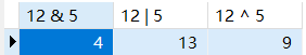 SELECT 12 & 5, 12 | 5,12 ^ 5 FROM DUAL;