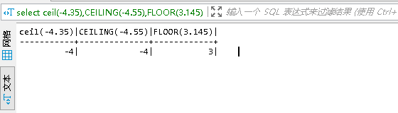 3.獲取整數的函數CEIL(x)、CEILING(x)和FLOOR(x)