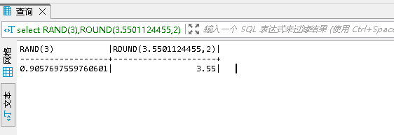 select mod (12,3.5); select ceil(-4.35),CEILING(-4.55),FLOOR(3.145);select RAND(3),ROUND(3.5501124455,2)select ROUND(4),ROUND(4.1523123,2),TRUNCATE(5.144552,2)select SIGN(4),SIGN(-4),SIGN(0)select POW(2,2),POWER(2,2),EXP(2)select LOG(100),LOG10(100),LOG(-100)select RADIANS(45),DEGREES(0.785)select SIN(20),ASIN(-0.1),ASIN(2)