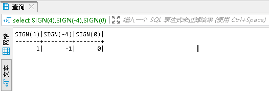 SIGN(x)返回參數的符號,x的值為負、零或正時返回結果依次為-1、0或1,比如輸入:SIGN(-4)返回-1;SIGN(0)返回0;SIGN(4)返回1。