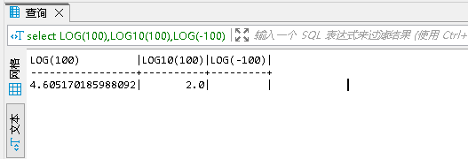 10的2次方等于100,因此LOG10(100)返回結果為2;LOG10(-100)定義域非負,因此返回NULL。