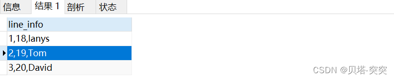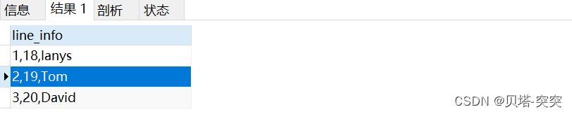select CONCAT(id,",",age,",",name) AS line_info from user