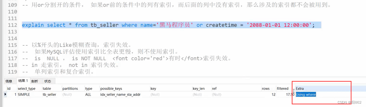 explain中的extra列
