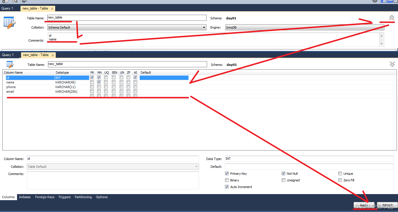 填寫Table Name,Comments之后點(diǎn)擊向上的箭頭,填寫Column信息。