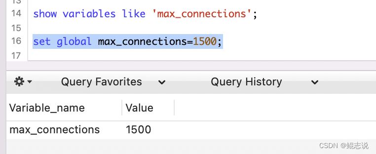 # 修改my.cnf文件,在文件中加入如下屬性max_connections=1500# 然后重啟mysql服務$ service mysqld restart