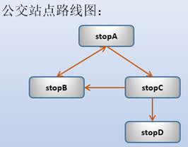 計算以stopA為起點,可以到達哪些站點,并給出路線圖。例如:stopA-->stopC-->stopD。